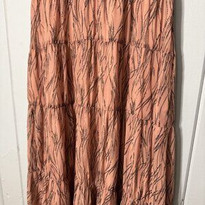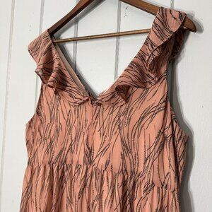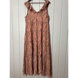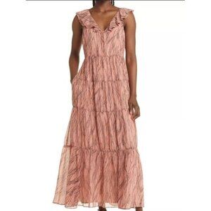 Chelsea28 Pink Ruffle V Neck Back Tiered Ruffle Womens Maxi Dress Pockets Large
