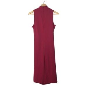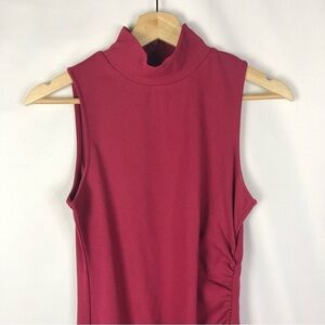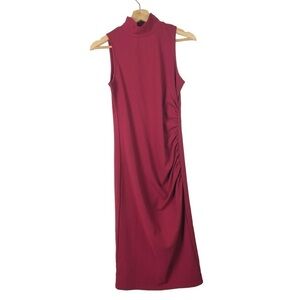 Chelsea28 Red Mock Neck Sheath Ruched Side Midi Dress XS