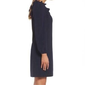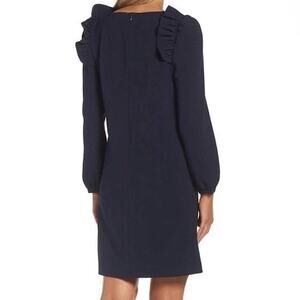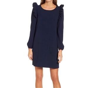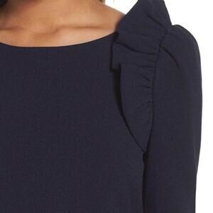 Chelsea28 Ruffle Shoulders Shift Dress Long Sleeves Scoop Neck Navy Size 8