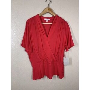 Chelsea28 Medium M Side Button Textured Wrap Top Hot Pink NEW.