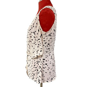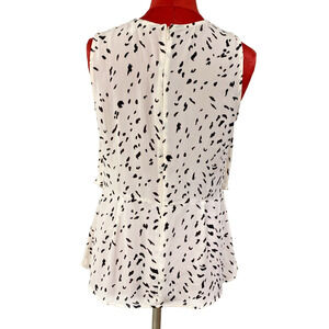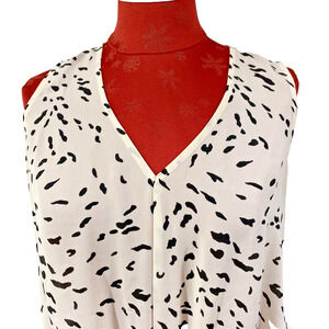 Chelsea28 Size M Sleeveless Blouse Top Faux Tie Waist Cream Black Animal Print