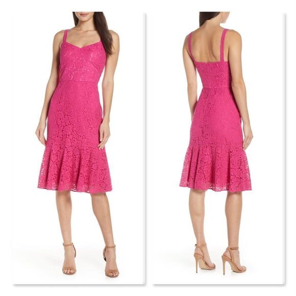 Chelsea28 Sleeveless Lace Fit & Flare Dress in Pink.