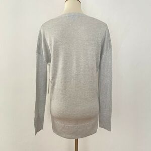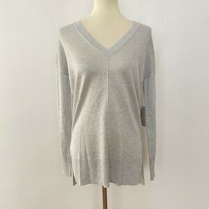 Chelsea28 V Neck Metallic Pullover Sweater Long Sleeve Grey Silver XS