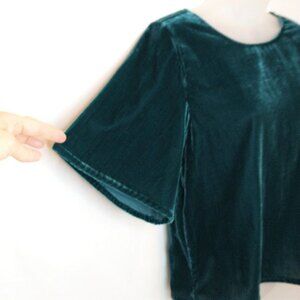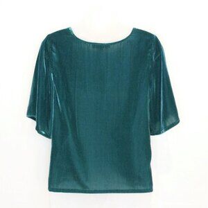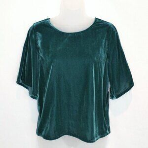 Chelsea28 Velvet Round Neck Flutter Sleeve Blouse Top XS Emerald Green NWT