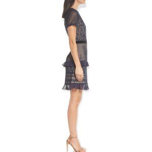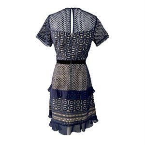 Chelsea28 Velveteen Lace Sheath Dress Ruffles Navy Blue, Medium