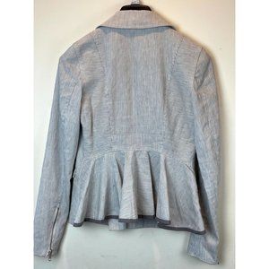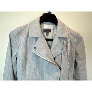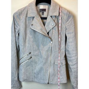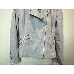 Chelsea28 Women Slim Lapel Multiple Zippers Motorcycle Jacket Gray White Size XS