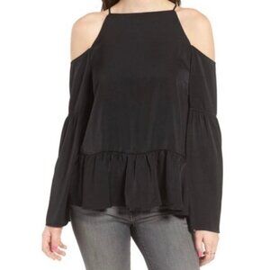 Chelsea28 Women's NWT Black Cold Shoulder Open Bell Flutter Sleeve Blouse XS