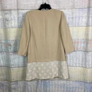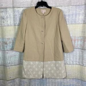 Chelsea28 Women's Tan White Lace Hem Long Line Coat