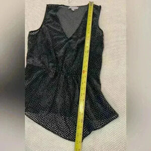 ✨Chelsea28 size small sheer black polka dots peplum sleeves top V-neck