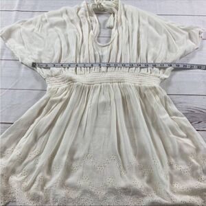 Chelsea28 Womens White Batwing Embroidered Eyelet Smocked Waist Mini Dress Large
