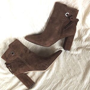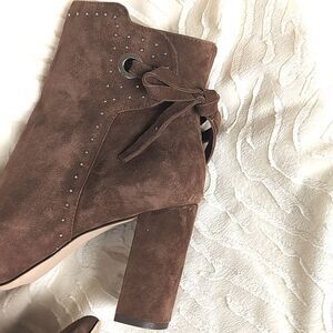 Miley Suede Pointed Toe Studded Back-Tie Block Heel Booties
