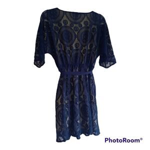 Chelsea And Violet Blue Lace Overlay Belted Dress