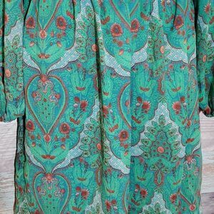 Chelsea & Violet Sherwood Forest Green Paisley Long Sleeve Dress Sz S New
