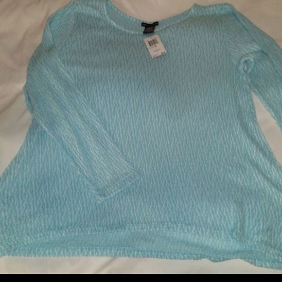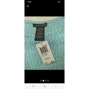 NWT Chelsea and Theodore light sweater, crisp blue and white XXL is stretchy and someone may want to put a white tank top underneath,because it is a little see through. But absolutely gorgeous on, gives a slimming effect.