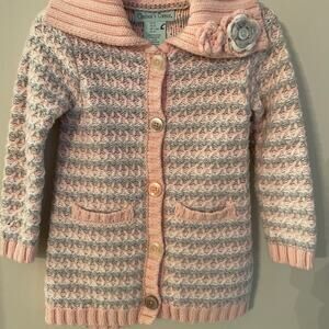 Chelsea's Corner Thick Knit Sweater/Cardigan Pink & Gray Floral Accent Size 2T