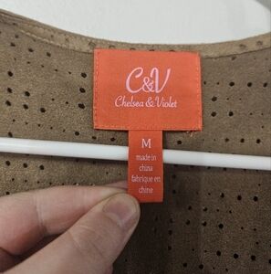 Chelsea&violet Lasercut Tan Open Front Cardigan!