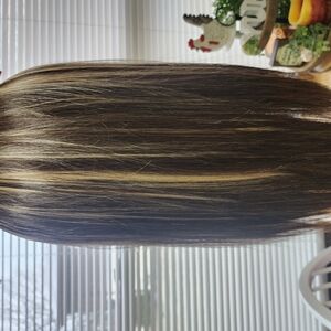 like new. only wore twice. curtain bangs were cut. her fibers are so soft!! excellent condition.