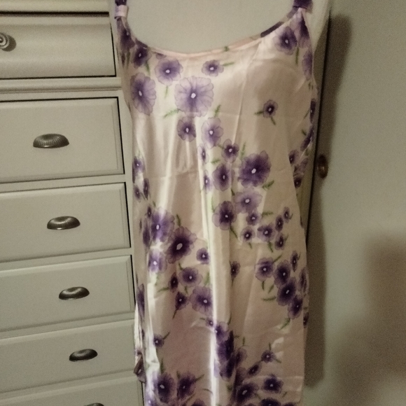 satin & soft Chemise it's pink and has purple 🟣 flowers on it