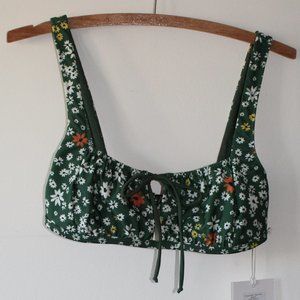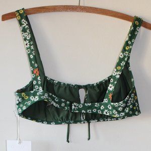 New with tags, vintage inspired, three-loop adjustable band top from eco-friendly, California-made brand Galamaar. Darling retro green floral print. Please note, this style / colorway is completely sold out by Galamaar in this size. Such a flattering cut!