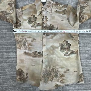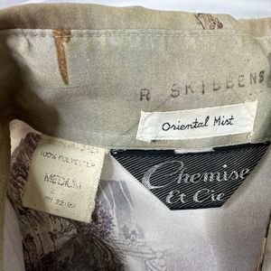 Chemise Et Cie Button Down Shirt Oriental Mist Polyester Vintage 70s Mens M