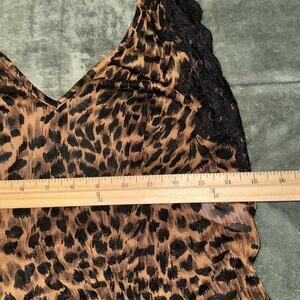 Chemise Halter Dress Women’s Medium Brown Black Leopard Print Lace Trim Lingerie.