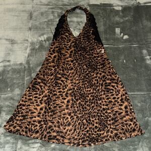 Chemise Halter Dress Women’s Medium Brown Black Leopard Print Lace Lingerie Slip