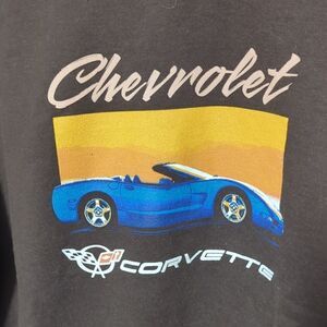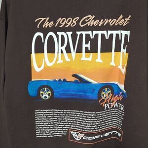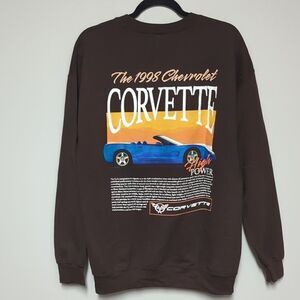 Brown Crewneck Sweatshirt, yellow and blue Chevrolet Corvette graphic on the front and back