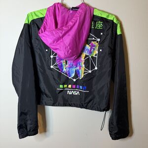 Chemistry NASA Lightweight 1/2 Zip Cropped Hooded Jacket Windbreaker Size M
