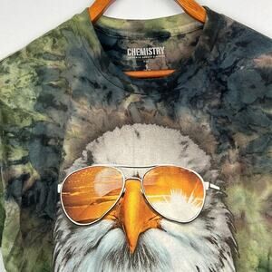 Chemistry tie dye bald eagle with aviators small graphic tee