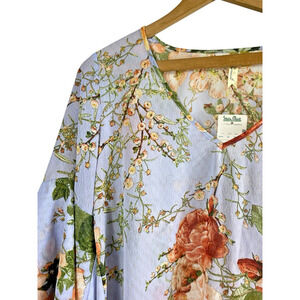 Chenault Blouse Top Light Blue Romantic Rose Floral Bell Sleeve Cottage Large