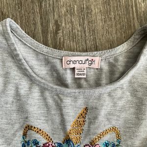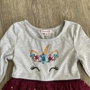 Chenault Girl Dress Size 4/5 GrayTulle Unicorn Long Sleeve Burgundy Sparkle Very good condition