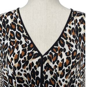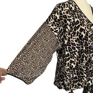 Chenault Top Blouse Leopard Animal Print V-Neck Waist Tie Women's Size L