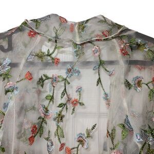 Chenault Womens Sheer Mesh Floral Embroidered Boho Fairy Cardigan S Vacation