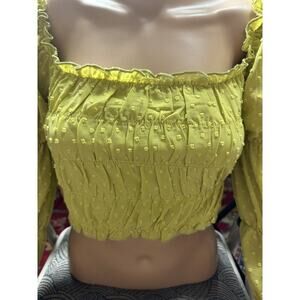 This Chenille Dots Crop Top by Fashion Nova is the perfect addition to your wardrobe. The top features a polka dot pattern, long balloon sleeves, a square neckline, and a cropped fit. Made of polyester material, this top offers a classic fit and comes in a vibrant yellow-green color.