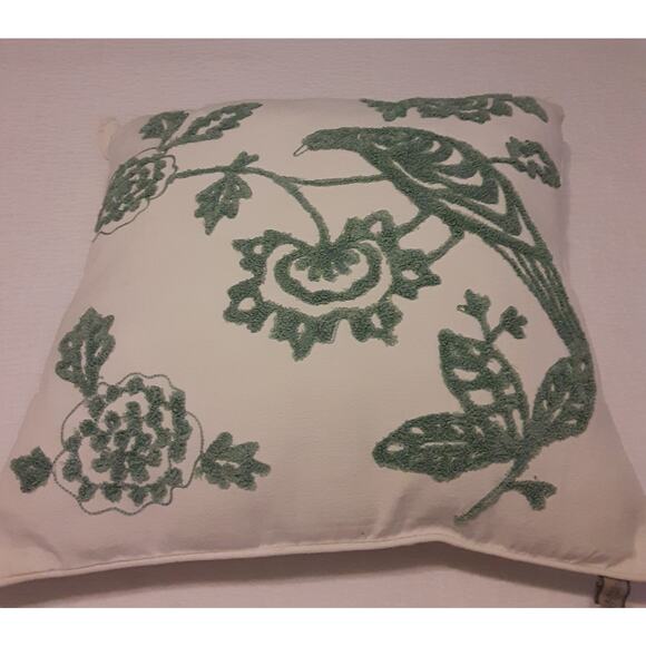 Add a touch of elegance to your home decor with the Stratford Home Chenille Embroidered Pillow. Featuring a charming bird and floral theme, this 19x19 square pillow is a perfect blend of style and comfort. The sea green and linen colors create a serene and inviting atmosphere in any room. Crafted from a luxurious mix of chenille and linen feel, the pillow boasts exquisite embroidery that adds a decorative flair to your furnishings. Its versatile style makes it an ideal accent for your living room, bedroom, or any space that needs a quaint and sophisticated touch.