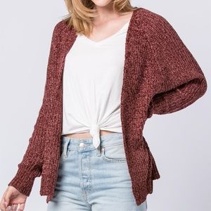 Chenille Open Knit Cardigan Sweater Warm NWT