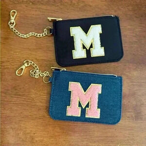 Chenille Patch Initial Keychain. Choose from Denim or Black. Any letter and letter color of pink or black!
