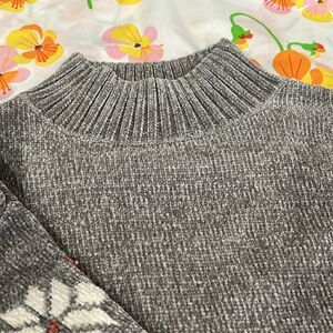 Chenille Mock Neck Sweater Christian Siriano - M Gray Snowflakes