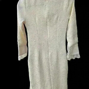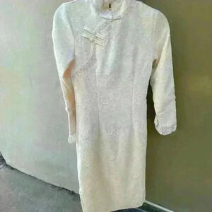 This is an elegant Cheongsam Wedding dress. It is lined and has beautiful buttons and lace on the cuffs. Size small.