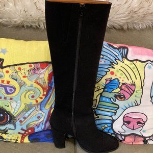 Vegan suede black boots with 4" stacked heels by NAE Vegan Shoes. Boots have never been worn and are in excellent condition. The original box is not available. Euro Size - 39 (US Size 8.5). Breathable and anti-allergy knee boots. MADE IN PORTUGAL Upper: Ecological microfiber. Oeko-Tex Certified. $200 OBO