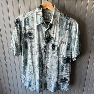 Chereskin Men’s Linen Blend Short Sleeve Hawaiian Button Down Shirt Medium
