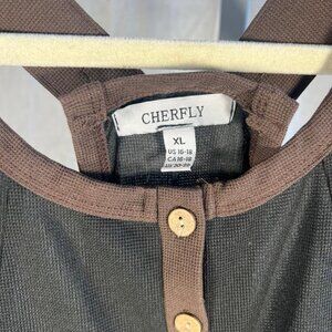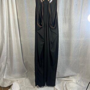 Cherfly Pull-on Black Jumpsuit with Brown Trim - Size XL in Great Condition!