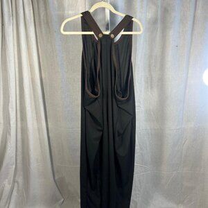 Cherfly Pull-on Black Jumpsuit with Brown Trim - Size XL
