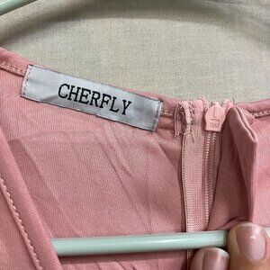 Cherfly Women's Small Peach Pink V-Neck Sleeveless Wide Leg Elegant Jumpsuits