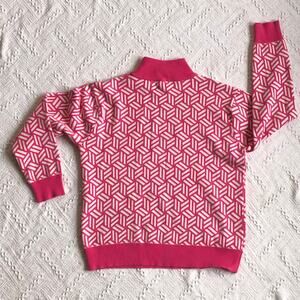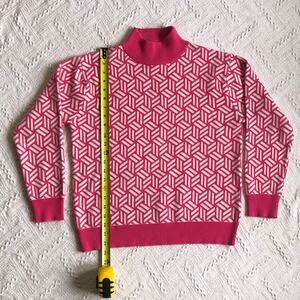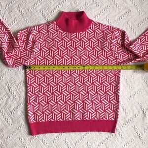 Cherie Collette Pink Geometric Knit Sweater Medium Mock Neck Barbiecore Coquette