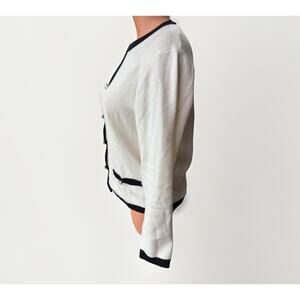 Cherie Collette White Preppy Classic Sweater Size S Buttons Soft
