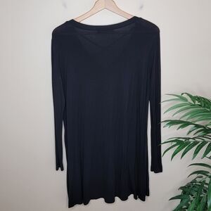 Long sleeve black tunic dress with a fun criss cross neckline.