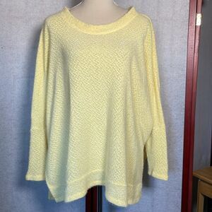 Stay warm and stylish with this cozy butter yellow sweater. Cozy, lightweight and perfect for Spring. It is OVERSIZED, so could fit up to a medium or even large. Slits on the sides, and in absolutely excellent condition! You will love this piece!