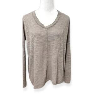 Cherish Long Sleeve Sweater Pullover Marled Design V Neck Boxy Knit Brown Small