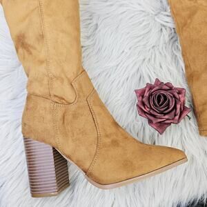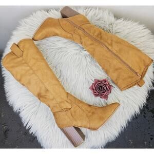 Cherish Lyndsy-11 Suede Knee High Boots Brown Block Heel Western Pointed Toe 5.5